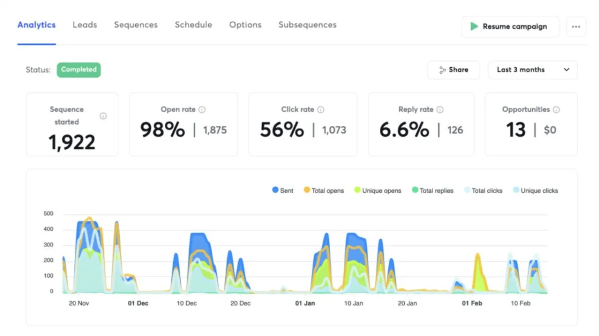 ● Reply rates and sentiment (positive, neutral, negative)